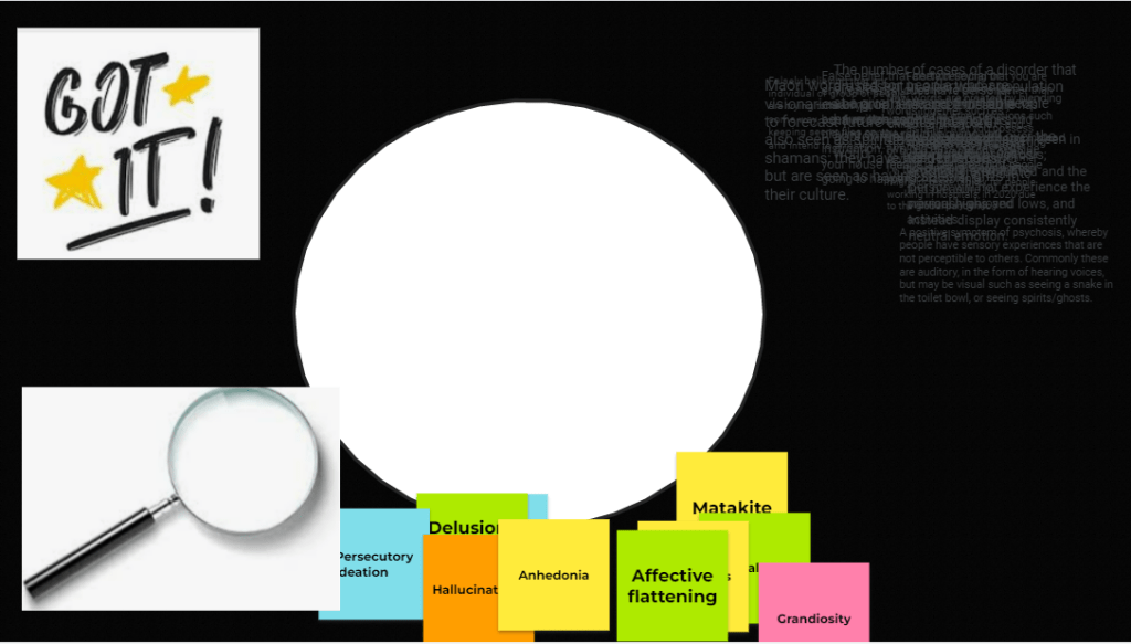 Definitions, examples and case studies https://www.nhs.uk/conditions/psychosis/ schizophrenia_wordsearchDownload schizophrenia_bingoDownload Click to make a copy, put the definitions ‘under the spotlight’ and decide which term matches which definition. Click the image to make your own copy of a sorting exercise to accompany the Aneja et al. (2018) case study. Share this: Click to share on X (Opens in new window) X Click to share on Facebook (Opens in new window) Facebook Like Loading...
