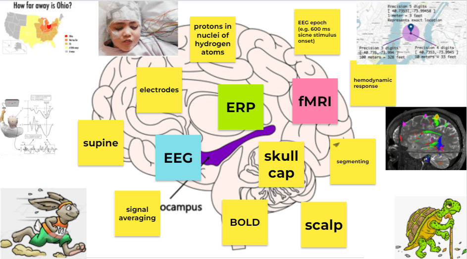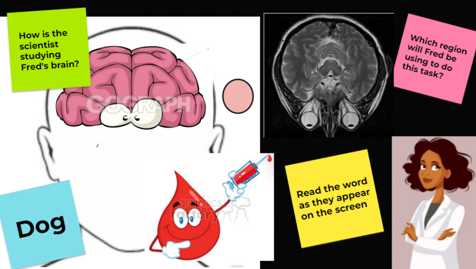 The jam board linked to these images contains super-simple graphics to prompt conversation about the differences between EEG and fMRI, add stickies, draw on it, whatever you like, once you click you can make your own editable copy. Just scroll through the slides to find the activity you want.